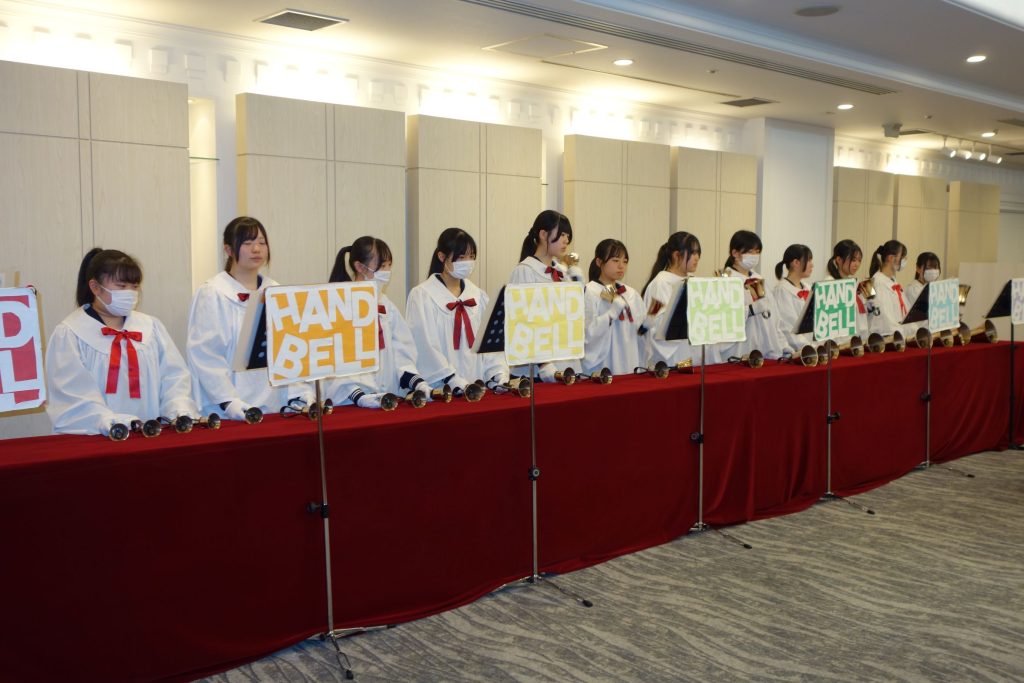 静岡英和女学院のハンドベルクワイアの皆様が演奏をしてくださました。1980年に県下で最初の演奏団体として活動を開始して以来、校内の行事はもちろん、教会、病院、福祉施設などで演奏奉仕を行っています。特にクリスマスシーズンはイベントなど多くの演奏依頼があり、演奏を通して「隣人愛」の建学の精神学んでいます。素敵な音色を聞かせていただきありがとうございました。